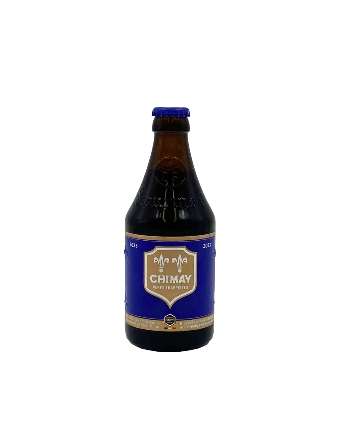 Η Chimay Blue εντυπωσιάζει με το θερμό, σκοτεινό χρώμα της και το συμπαγές, ανοιχτό καφέ αφρό της. Αυτή η μπύρα συνδυάζει υπέροχα αρωματικά φρούτα με την απόλαυση της σοκολάτας. Ξεκινά με μια ελαφριά γλυκιά νότα, ακολουθεί η κρεμώδης καραμέλα και η ήπια mocha, ενώ καταλήγει σε μια έντονα αρωματική, ζαχαρωμένη φρουτώδη επίγευση. Το γευστικό προφίλ ολοκληρώνεται με μια ευχάριστη, παρατεταμένη επίγευση σοκολάτας.