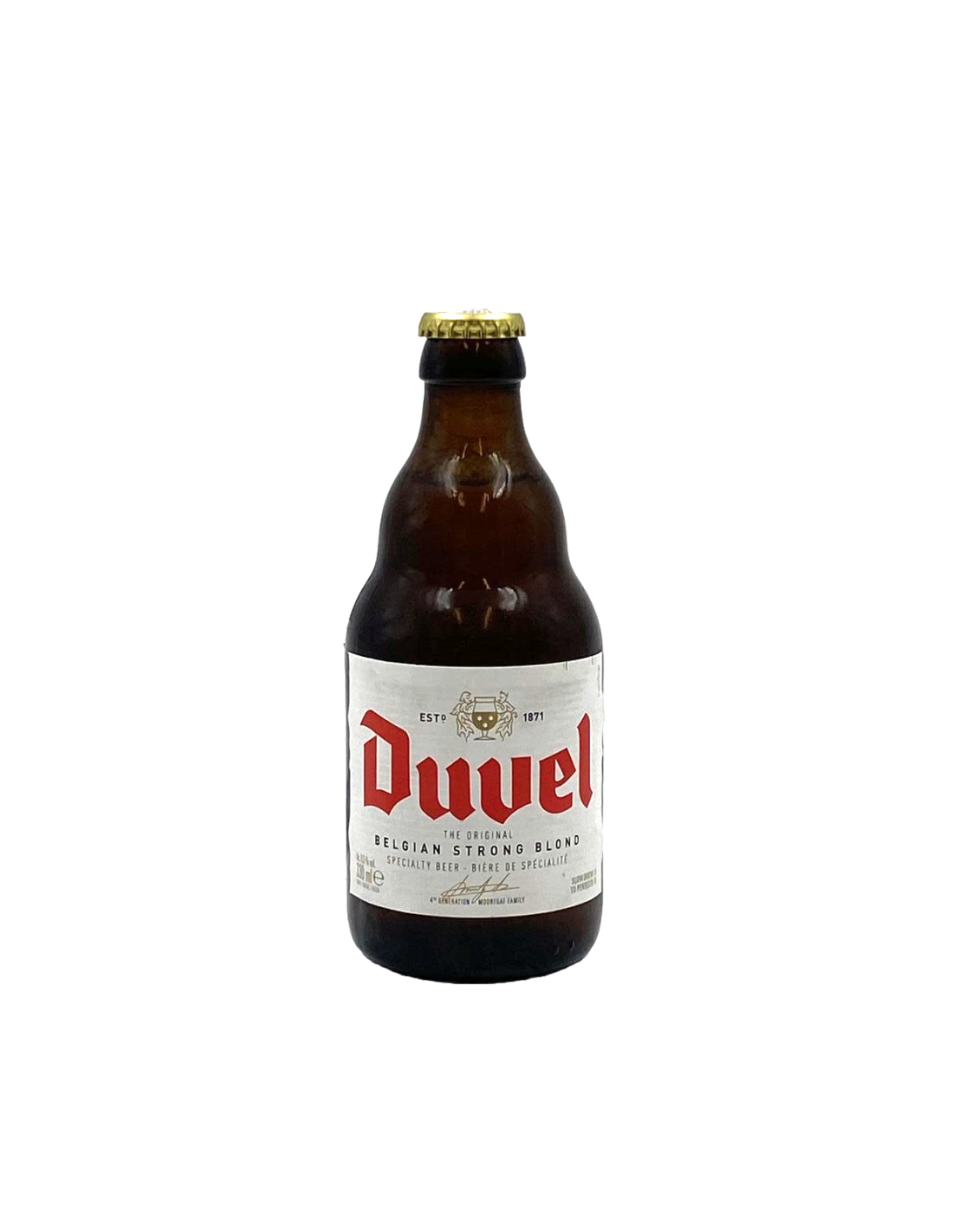 Η Duvel είναι μια βελγική μπύρα, που ξεχωρίζει για την έντονη πικράδα της και την εξαιρετική ισορροπία γεύσης. Με φρουτώδη αρώματα και ελαφριά ξηρότητα, συνδυάζει νότες λυκίσκου και μια ελαφριά πικράδα στην επίγευση. Η διαδικασία δευτερογενούς ζύμωσης στο μπουκάλι προσδίδει έναν εξαιρετικά καθαρό και αναζωογονητικό χαρακτήρα. Ιδανική για όσους αναζητούν μια μπύρα με γεμάτη γεύση και εξαιρετική φινέτσα.