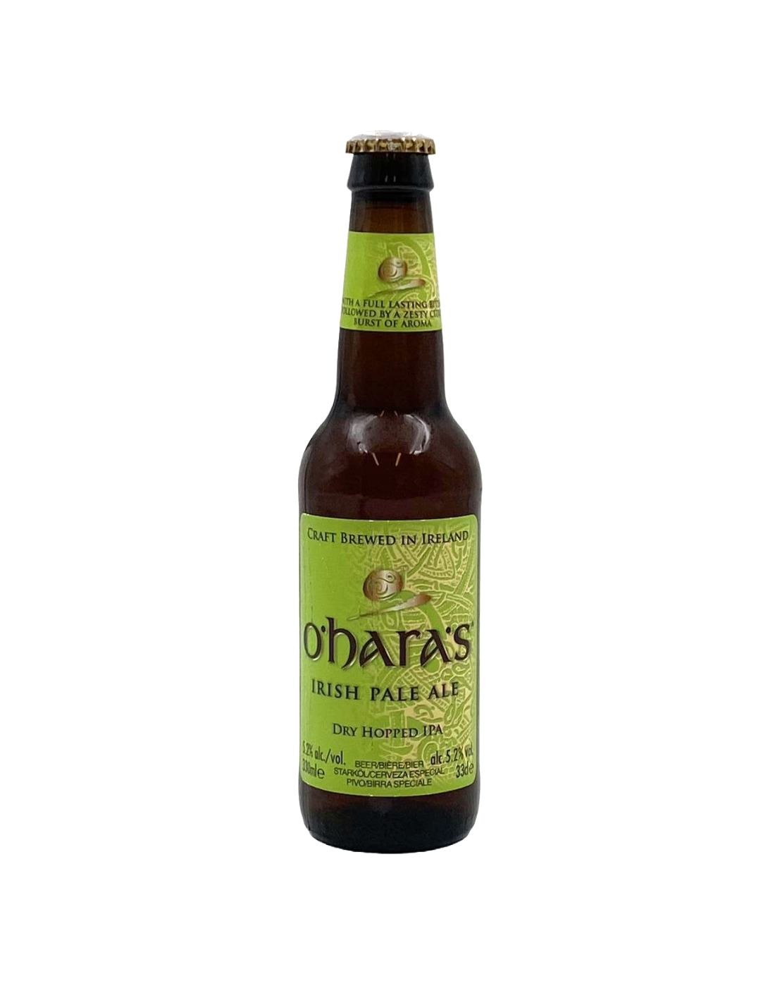 H O'Haras Irish Pale Ale είναι μια σύγχρονη IPA με ιρλανδική πινελιά. Με φρέσκια και αναζωογονητική πικράδα, η επίγευση της είναι μακρά. Έχει χαλκόχρωμο, με έναν ελαφρά ανθρακούχο αφρό. Το dry hopping της αποκαλύπτει έντονα αρώματα και διαρκείς νότες φρούτων και λουλουδιών.