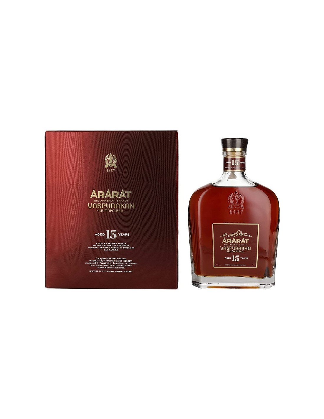 Το Ararat Brandy 15 Ετών Vaspurakan είναι ένα εκλεπτυσμένο αρμενικό brandy που ωριμάζει για 15 χρόνια, προσφέροντας έναν μοναδικό συνδυασμό γεύσεων και αρωμάτων. Παράγεται με παραδοσιακή τεχνική και χρησιμοποιεί τα καλύτερα σταφύλια της περιοχής, προσφέροντας ένα πλούσιο και γεμάτο σώμα, με νότες ξηρών καρπών, βανίλιας και μπαχαρικών. Ιδανικό για απαιτητικούς λάτρεις του brandy, το Ararat Vaspurakan αποτελεί την τέλεια επιλογή για ιδιαίτερες περιστάσεις.