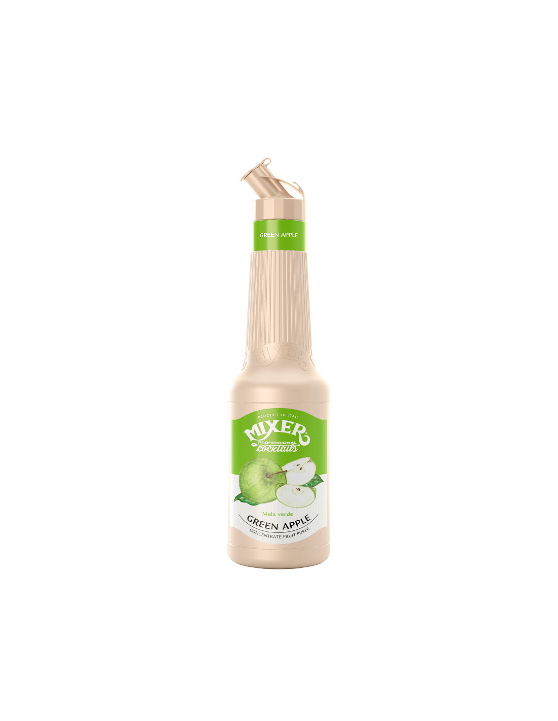 Μόνο τα καλύτερα μήλα από το Τρεντίνο και το Νότιο Τιρόλο επιλέγονται και συλλέγονται την στιγμή της τέλειας ωριμότητάς τους. Ο πολτός που παράγεται, είναι απόλυτα ισορροπημένος σε ζάχαρη και κρατάει τον ιδανικό βαθμό οξύτητας. Η εσάνς που λαμβάνουμε από την φλούδα των πράσινων μήλων, δίνει το άρωμα του φρεσκοκομμένου φρούτου. Ο πουρές πράσινου μήλου της Mixer έχει πολύ πυκνή υφή. Μπορεί να χρησιμοποιηθεί στην παρασκευή πολλών smoothies ή frozen μη αλκοολούχων cocktail ως βασικό συστατικό. Είναι αναμφισβήτητα το βασικό συστατικό για το περίφημο Apple Martini. Είναι τέλειο για χρήση και στην ζαχαροπλαστική, σε συνδυασμό με κρέμα και τυρί ρικότα, γαρνιρισμένο με σταφίδες και κανέλα. Το πράσινο μήλο της Mixer®, δεν περιέχει χρωστικές.