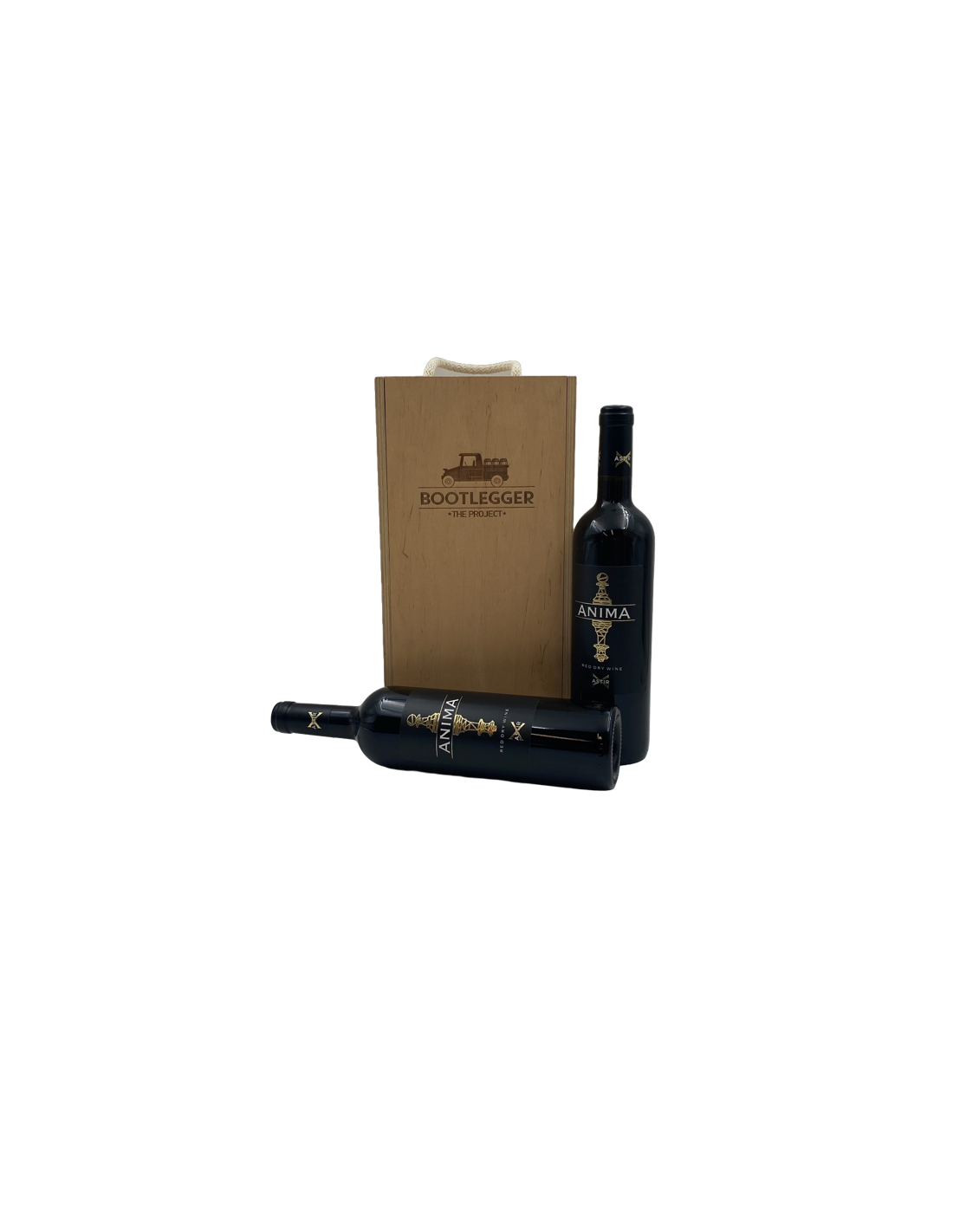 Ξύλινο κουτί με κορδόνι που περιλαμβάνει δύο μπουκάλια κρασί Anima Ερυθρά. Εξαιρετικός συνδυασμός για καλάθι δώρου, ιδανικός για κάθε ιδιαίτερη περίσταση, είτε πρόκειται για επιχειρηματικό δώρο είτε για γιορτή.