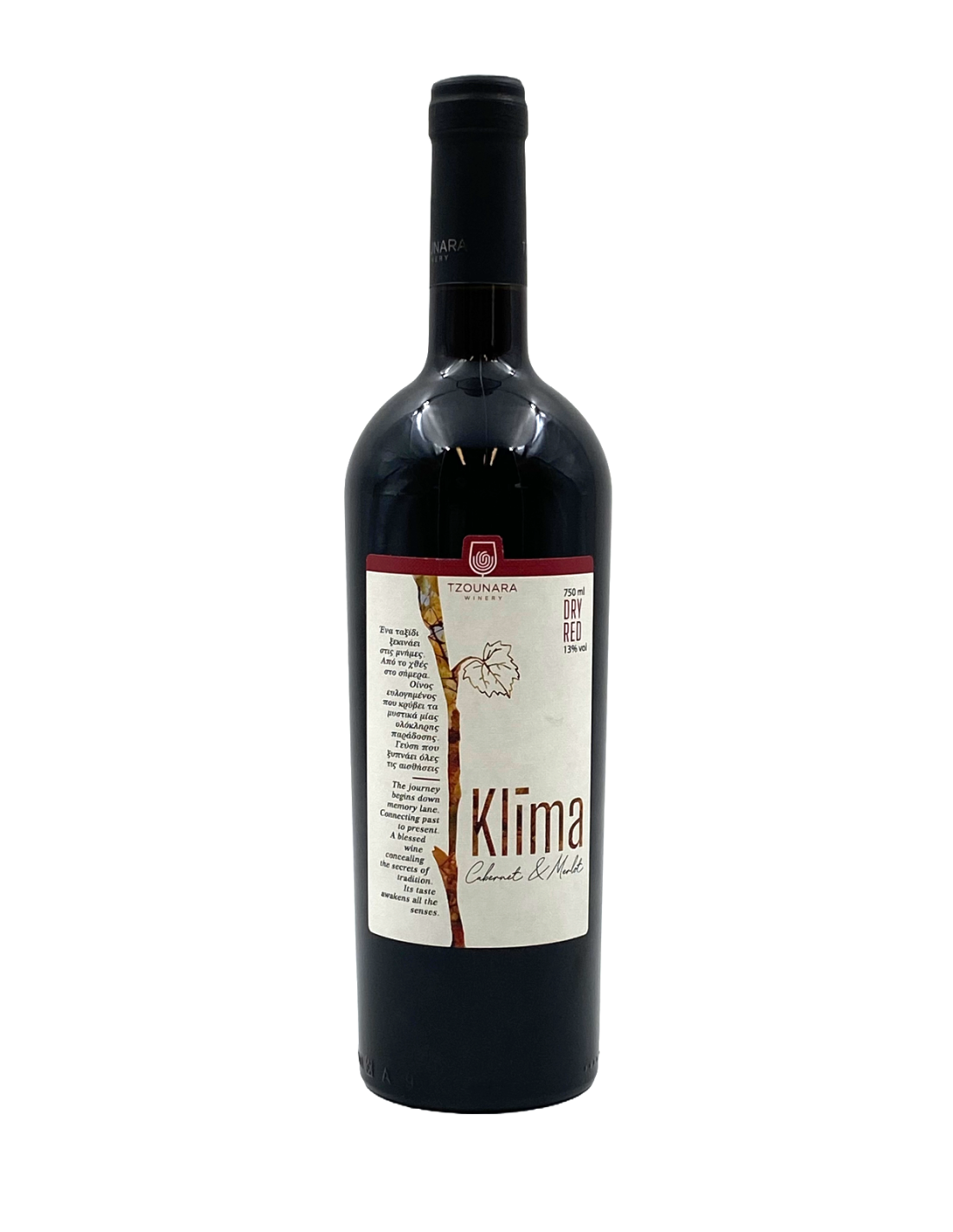 Από τα χαρμάνι Cabernet και Merlot γεννήθηκε το πορφυρό, σκούρο ρουμπινί Klima, με τη βελούδινη υφή και και το άρωμα κόκκινων ώριμων φρούτων και πικάντικων γλυκών μπαχαρικών. Γευστικό με πυκνότητα, μοναδική αμεσότητα και απόλυτη αρμονία οξύτητας, τανινών και αλκοόλ συνοδεύει ιδανικά κόκκινα κρέατα, πικάντικα τυριά και πιάτα με έντονη προσωπικότητα.