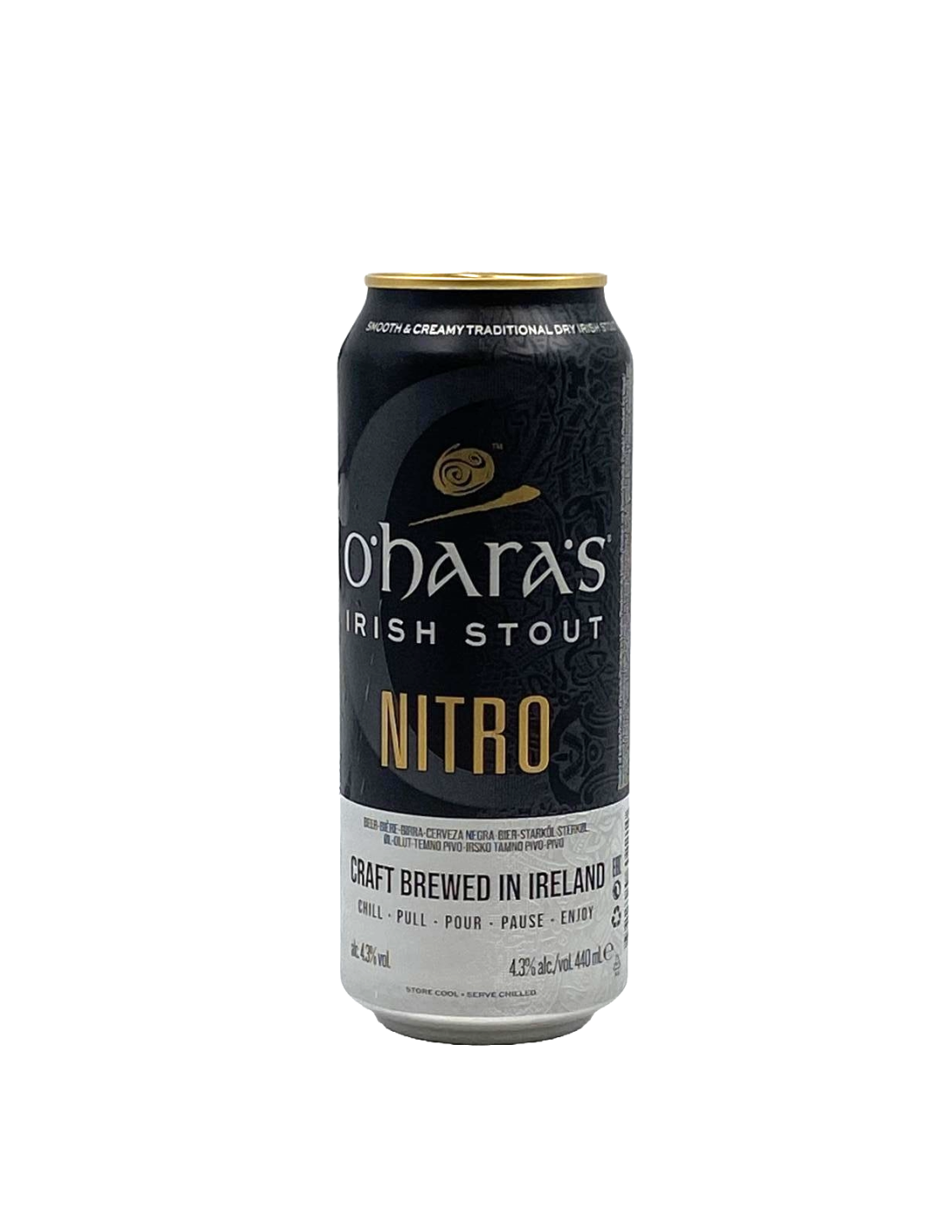 Η "O'Hara's Irish Stout Nitro" είναι μια πολυτελής, κρεμώδης ιρλανδική stout, η οποία αναδεικνύει τις πλούσιες, καβουρδισμένες γεύσεις καφέ και γλυκόριζας. Διαθέτει έντονη μαυρισμένη εμφάνιση και ελαφριά κόκκινη απόχρωση όταν κρατηθεί στο φως. Στο άρωμα κυριαρχεί ο καφές, ενώ το τελείωμα προσφέρει μια πικράδα από λυκίσκο Fuggles και καβουρδισμένα στοιχεία espresso. Ιδανική για να συνοδευτεί με κρεατικά, ψητά και τυριά.