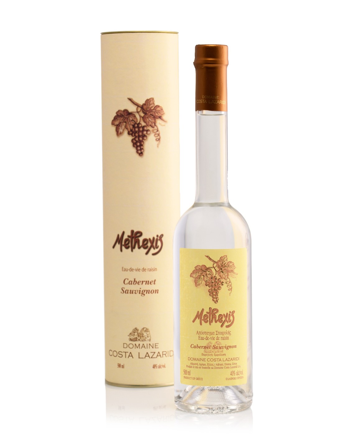 Το Τσίπουρο Methexis με βάση τη δημοφιλέστερη ίσως κόκκινη ποικιλία στον κόσμο, την Cabernet Sauvignon, και με προσεκτική απόσταξη σε χάλκινους άμβυκες, δημιουργούμε το πιο στιβαρό απόσταγμα σταφυλής της συλλογής μας. Νύξεις φρούτων του δάσους, σοκολάτας και μέντας, σε πιπεράτο φόντο. Γεμάτο αλλά συγχρόνως ευγενικό, αναδεικνύει την αρρενωπή όψη της ποικιλίας.