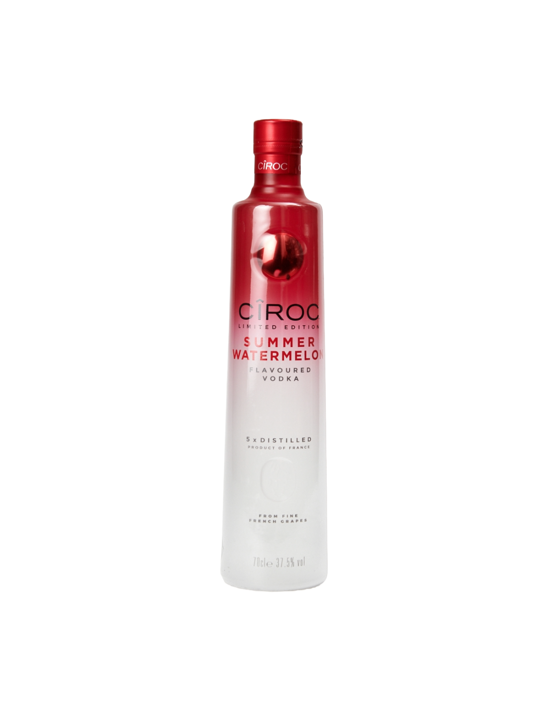 Η Ciroc Summer Watermelon είναι μια περιορισμένης έκδοσης premium βότκα, αποσταγμένη πέντε φορές από εκλεκτά γαλλικά σταφύλια και εμποτισμένη με φυσικές γεύσεις καρπουζιού. Αυτή η βότκα προσφέρει μια δροσιστική, φρουτώδη γεύση με νότες γλυκού καρπουζιού και μια υπέροχα λεία επίγευση. Ιδανική για καλοκαιρινές βραδιές, μπορείτε να την απολαύσετε μόνη της με πάγο ή να δημιουργήσετε τα αγαπημένα σας φρουτώδη κοκτέιλ.