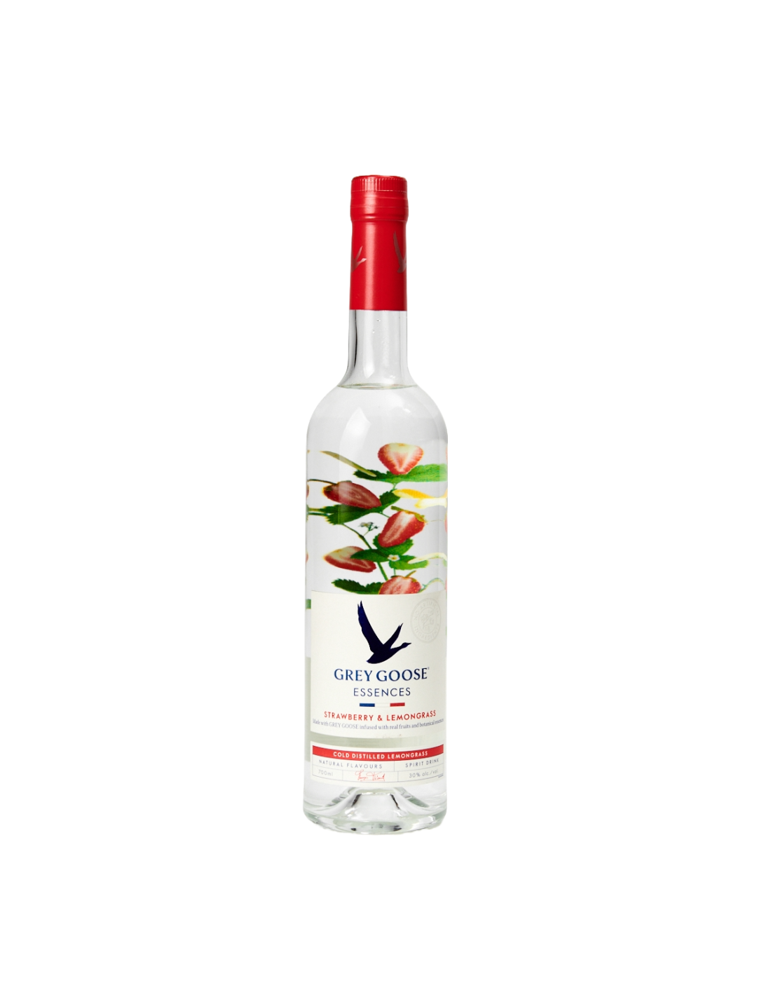 Η Grey Goose Essences Strawberry & Lemongrass είναι μια εξαιρετική βότκα με φυσικές γεύσεις φράουλας και λεμονόχορτου, που συνδυάζονται για να προσφέρουν μια γλυκιά και ελαφρώς εσπεριδοειδή γεύση. Φτιαγμένη με την απαλή βότκα Grey Goose και φυσικά εκχυλίσματα φρούτων και βοτάνων, προσφέρει μια δροσερή και αναζωογονητική εμπειρία.