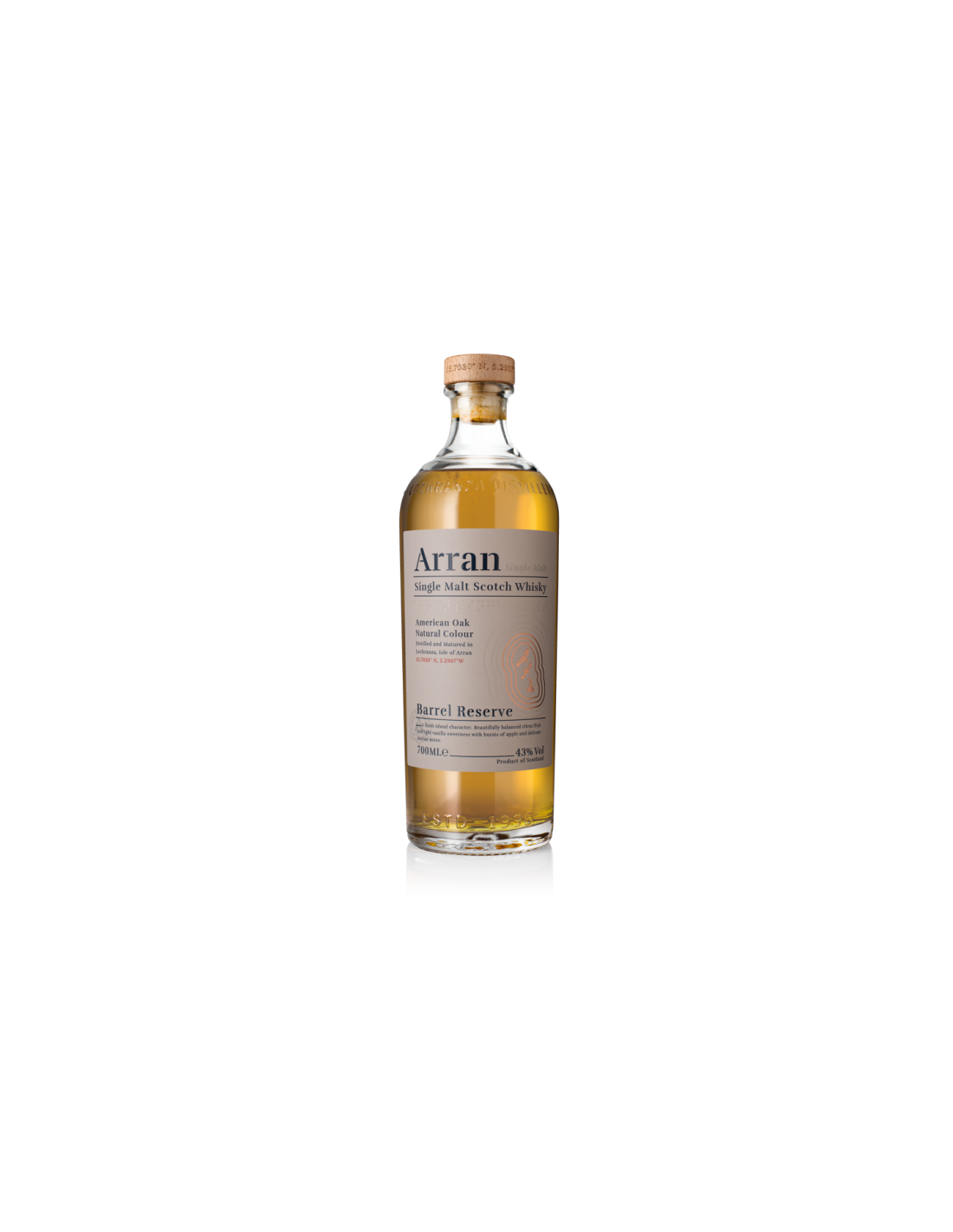 Το Arran Barrel Reserve είναι ένα, ελαφρύ και εκλεπτυσμένο single malt ουίσκι χωρίς ηλικιακή αναφορά. Ωριμάζει σε βαρέλια Bourbon και προσφέρει μια εξαιρετική γευστική εμπειρία. Το άρωμά του γεμίζει τον αέρα με νότες από μήλα και αχλάδια, ενώ η γεύση συνδυάζει φρέσκα εσπεριδοειδή και ελαφριά γλυκύτητα βανίλιας. Το τελείωμα είναι γλυκό, με μπαχαρικά, καπνιστό ξύλο, εσπεριδοειδή και βανίλια. Ιδανικό για κάθε περίσταση, σκέτο, με πάγο ή σε κοκτέιλ.