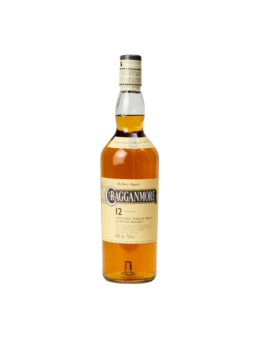 Δεν υπάρχουν άλλα προϊόντα στο καλάθι σαςΤο Cragganmore 12 Year Old Single Malt είναι ένας εξαιρετικός εκπρόσωπος του Speyside, με πλούσια γεύση και σύνθετο άρωμα. Διακρίνεται για τις νότες από λουλούδια, μέλι και βανίλια, ενώ η γεύση του είναι γεμάτη και ελαφρώς καπνιστή με νύξεις ξύλου. Η επίγευση είναι μακρά και malt-driven, με υποκείμενη γλυκύτητα και ελαφρύ καπνό. Ιδανικό για να το απολαύσετε σκέτο ή με λίγο νερό για να αναδειχθούν όλες οι γεύσεις του.