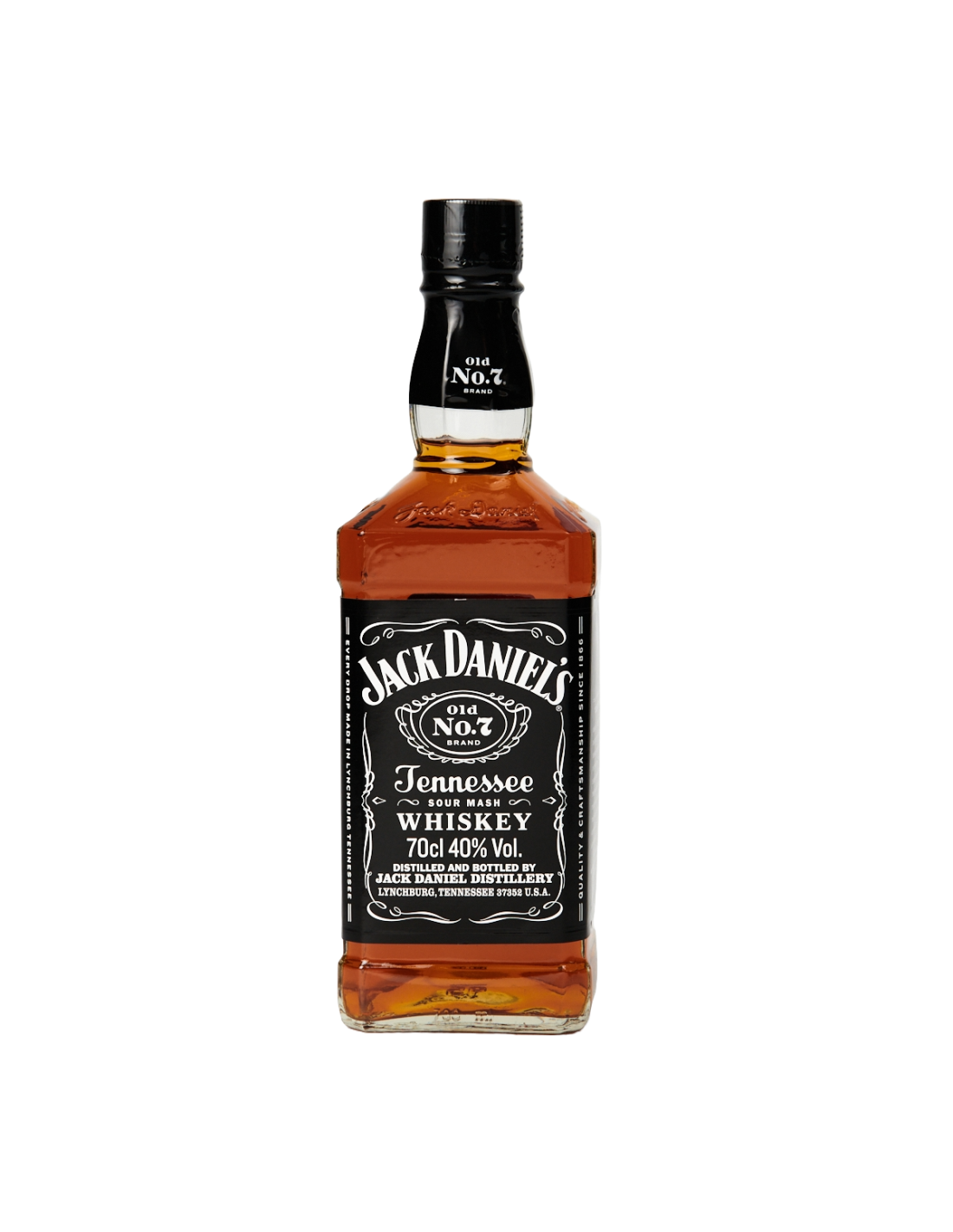 Το Jack Daniel's Old No. 7 είναι το θρυλικό Tennessee Whiskey, που ωριμάζει σε ειδικά κατασκευασμένα βαρέλια και περνάει από μια μοναδική διαδικασία "charcoal mellowing", όπου το ουίσκι διηθείται αργά μέσα από ξύλα σφενδάμου για να αποκτήσει έναν εξαιρετικά μαλακό και ισχυρό χαρακτήρα. Με πλούσιες γεύσεις από βανίλια, καραμέλα και ξύλο, το Old No. 7 έχει ισχυρή αλλά ισορροπημένη γεύση που το καθιστά ιδανικό για να το απολαύσετε σκέτο, με πάγο ή σε κοκτέιλ όπως το Jack & Cola.