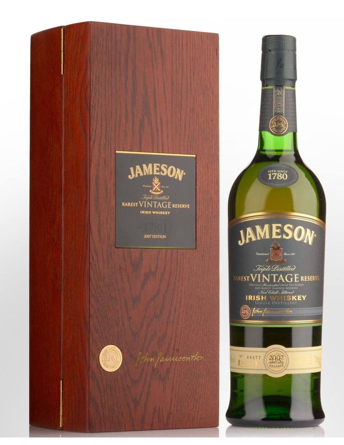 Δεν υπάρχουν άλλα προϊόντα στο καλάθι σαςΤο Jameson Vintage Reserve 2007 είναι ένα εκλεκτό ιρλανδικό ουίσκι που αποτελεί μια εξαιρετική επιλογή για τους λάτρεις του ποιοτικού ουίσκι. Παράγεται από την Jameson, μια από τις πιο διάσημες και σεβαστές μάρκες ιρλανδικού ουίσκι στον κόσμο. Αυτή η συγκεκριμένη έκδοση, από το 2007, είναι περιορισμένης παραγωγής και διακρίνεται για την ιδιαίτερη γεύση και την εξαιρετική ποιότητα της. Πλούσιο και γεμάτο με νότες από ξηρούς καρπούς, βανίλια, γλυκό καραμέλας και μπαχαρικά. Η γεύση του είναι ισχυρή, προσφέροντας μια ευχάριστη και μακράς διάρκειας επίγευση.
