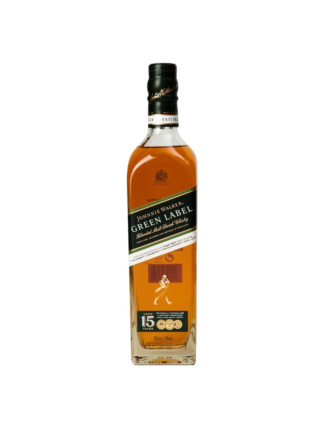 Το Johnnie Walker Green Label είναι ένα εξαιρετικό blended malt Scotch whisky, που αποτελείται από μείγμα εκλεκτών single malt από όλη τη Σκωτία. Είναι γνωστό για τον πλούσιο χαρακτήρα του, με πικάντικες, φρουτώδεις και ελαφρώς καπνιστές νότες, που το καθιστούν ιδανικό για τους λάτρεις των πιο σύνθετων γεύσεων. Η παλαίωσή του προσφέρει έναν τέλειο συνδυασμό ισχυρών αρωμάτων και απαλή υφή.