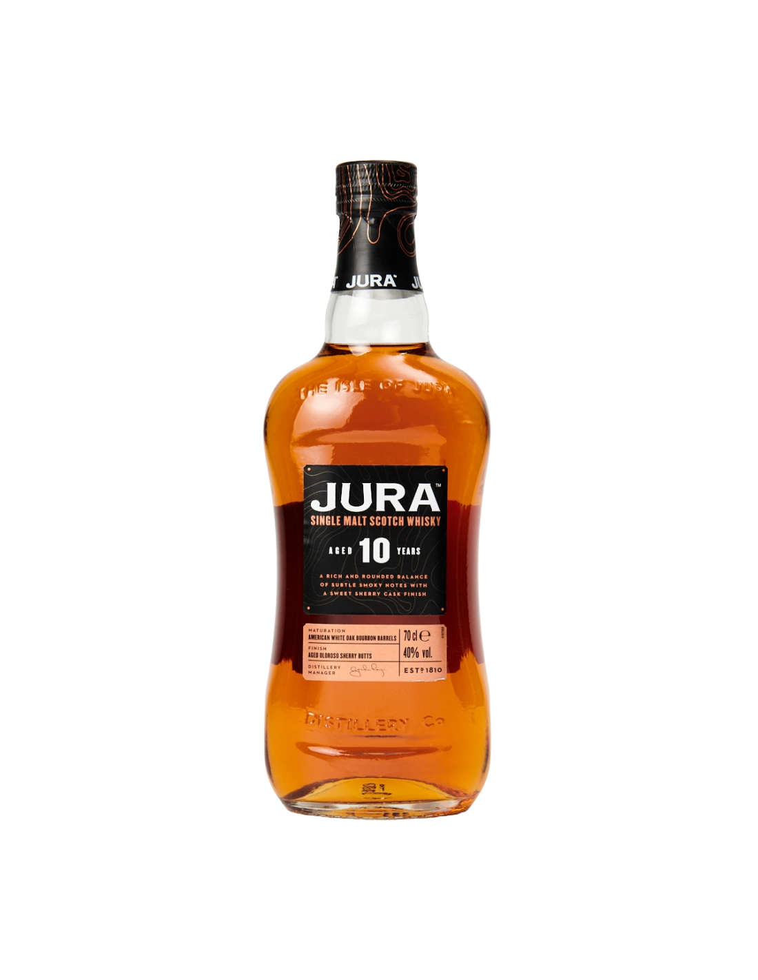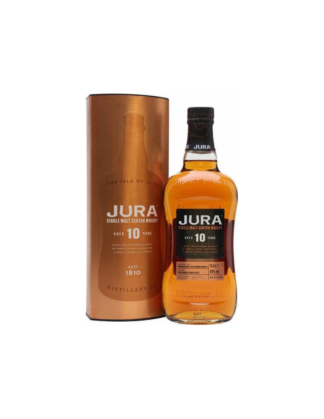 Δεν υπάρχουν άλλα προϊόντα στο καλάθι σαςΤο Jura 10 Year Old είναι ένα εξαιρετικό Single Malt Whisky που ωριμάζει για 10 χρόνια σε αμερικάνικα δρύινα βαρέλια και ολοκληρώνεται σε βαρέλια Oloroso Sherry από την Ισπανία. Διακρίνεται για τις νότες βανίλιας, πορτοκαλιού, μαύρου πιπεριού και μαύρης σοκολάτας. Στη γεύση του ξεχωρίζουν το τζίντζερ, ο καφές και τα ψημένα αμύγδαλα, προσφέροντας μια γλυκιά και αρωματική εμπειρία. Ιδανικό για τους λάτρεις του whisky που απολαμβάνουν έναν ισχυρό αλλά ισορροπημένο χαρακτήρα.