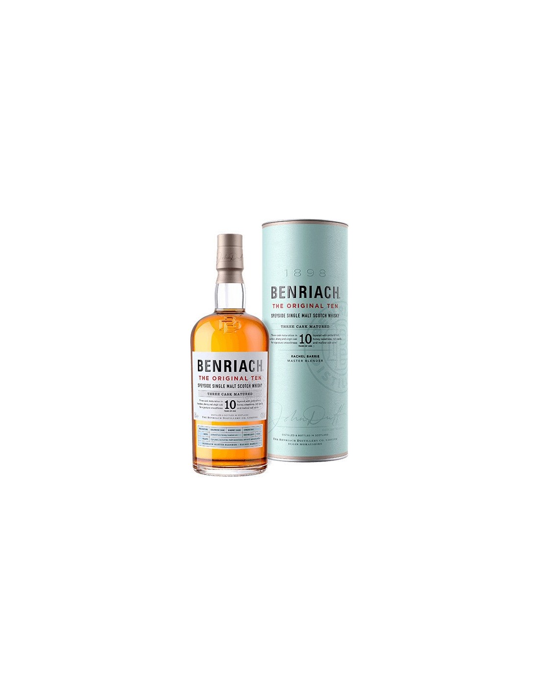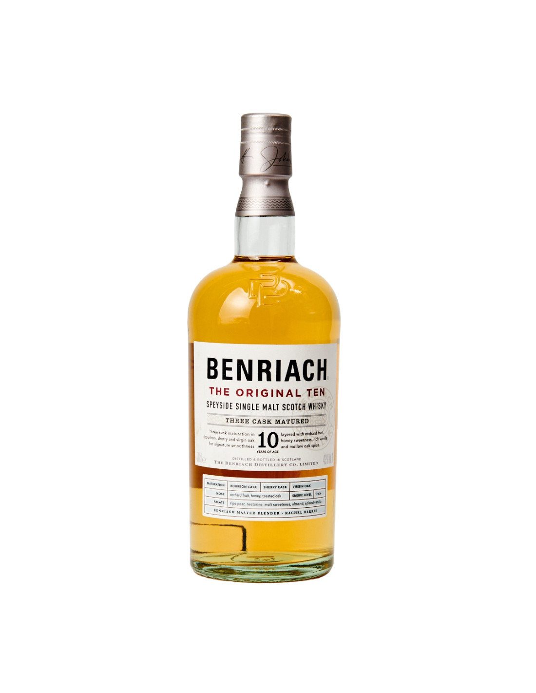 Δεν υπάρχουν άλλα προϊόντα στο καλάθι σαςΤο BenRiach The Original Ten ωριμάζει για τουλάχιστον 10 χρόνια σε βαρέλια Bourbon, Sherry και Virgin Oak. Προσφέρει μια μοναδική γευστική εμπειρία με πλούσιες νότες φρούτων από οπωροφόρα δέντρα, μέλι και καβουρδισμένο ξύλο. Στο στόμα, αποκαλύπτεται γλυκιά γεύση από ώριμα αχλάδια και νεκταρίνια, ενώ η βανίλια και το αμύγδαλο προσδίδουν μία πικάντικη διάσταση. Με ελαφρύ ίχνος καπνού, το BenRiach The Original Ten αποτελεί την ιδανική εισαγωγή στον πλούσιο και πολύπλοκο χαρακτήρα της σειράς BenRiach.