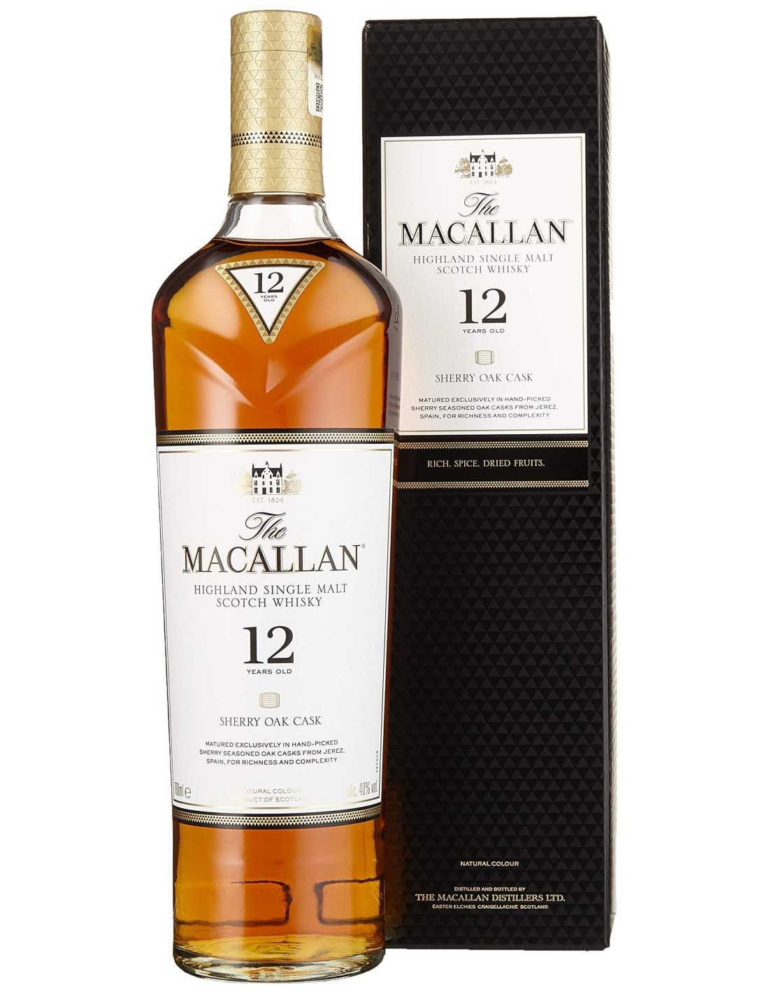 Το Macallan 12 Years Old Sherry Oak είναι ένα εξαιρετικό single malt, γνωστό για την πλούσια γεύση του και την εξαιρετική ωρίμανση σε βαρέλια που έχουν προετοιμαστεί με sherry από την Ισπανία. Στη μύτη, διακρίνονται αρώματα αποξηραμένων φρούτων, μπαχαρικών και ξύλου. Στο στόμα, το ουίσκι προσφέρει μια πλούσια, γλυκιά γεύση με νότες τζίντζερ και ξηρών καρπών, που οδηγεί σε μια ζεστή, μακρά επίγευση.