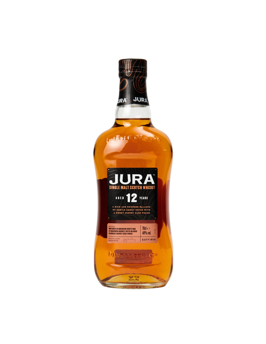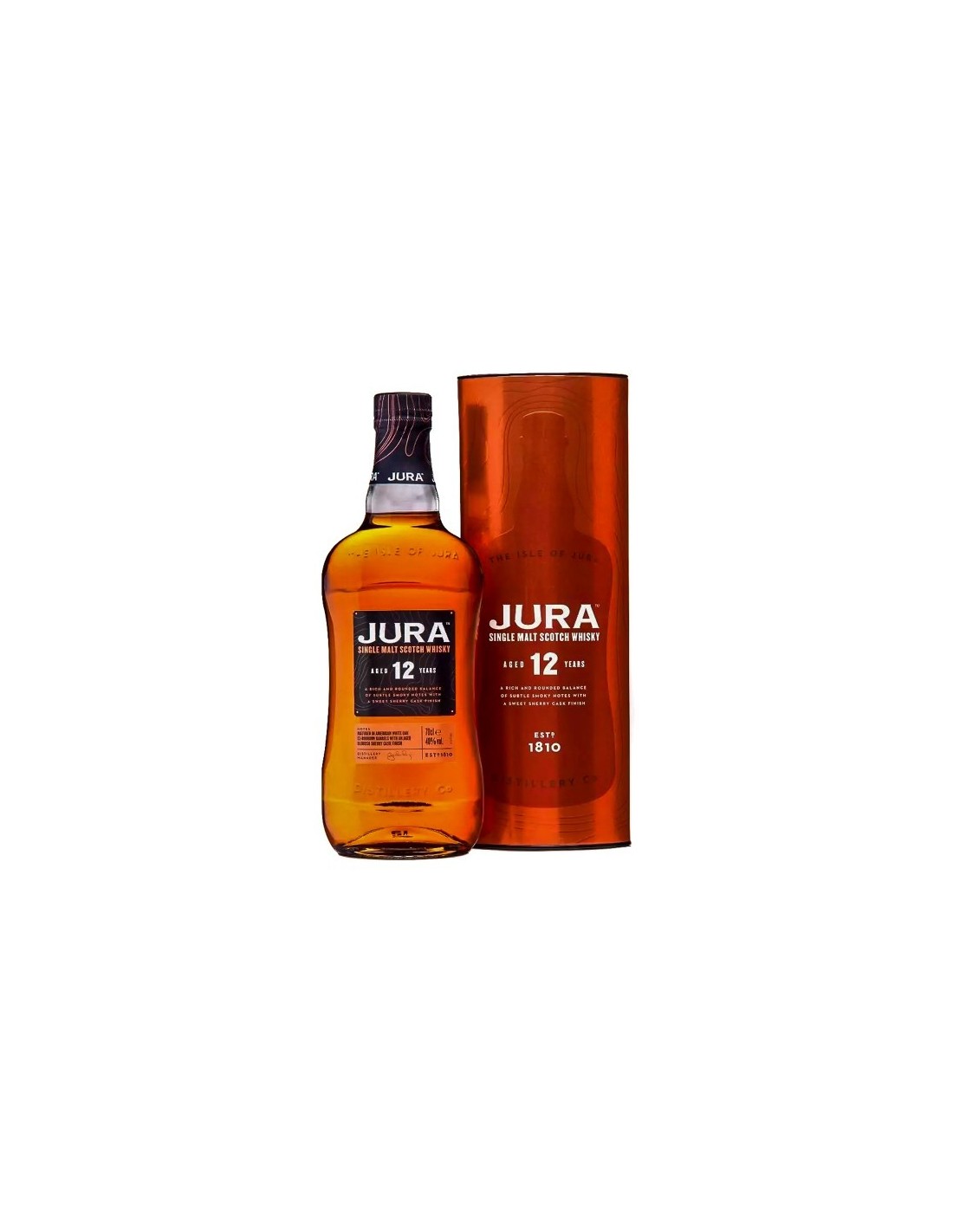 Δεν υπάρχουν άλλα προϊόντα στο καλάθι σαςΤο Jura 12 Year Old είναι ένα εξαιρετικό Single Malt Whisky που ωριμάζει για 12 χρόνια σε αμερικάνικα δρύινα βαρέλια και ολοκληρώνεται με μία λεπτή πινελιά από sherry. Διακρίνεται για τις νότες αποξηραμένων βερίκοκων, ψημένων καρυδιών και εσπεριδοειδών, ενώ στη γεύση του ξεχωρίζουν η σοκολάτα, ο καφές και οι μαύρες σταφίδες. Η ισχυρή επίγευση συνδυάζει μπαχαρικά, κανέλα και νότες θαλασσινής φρεσκάδας.