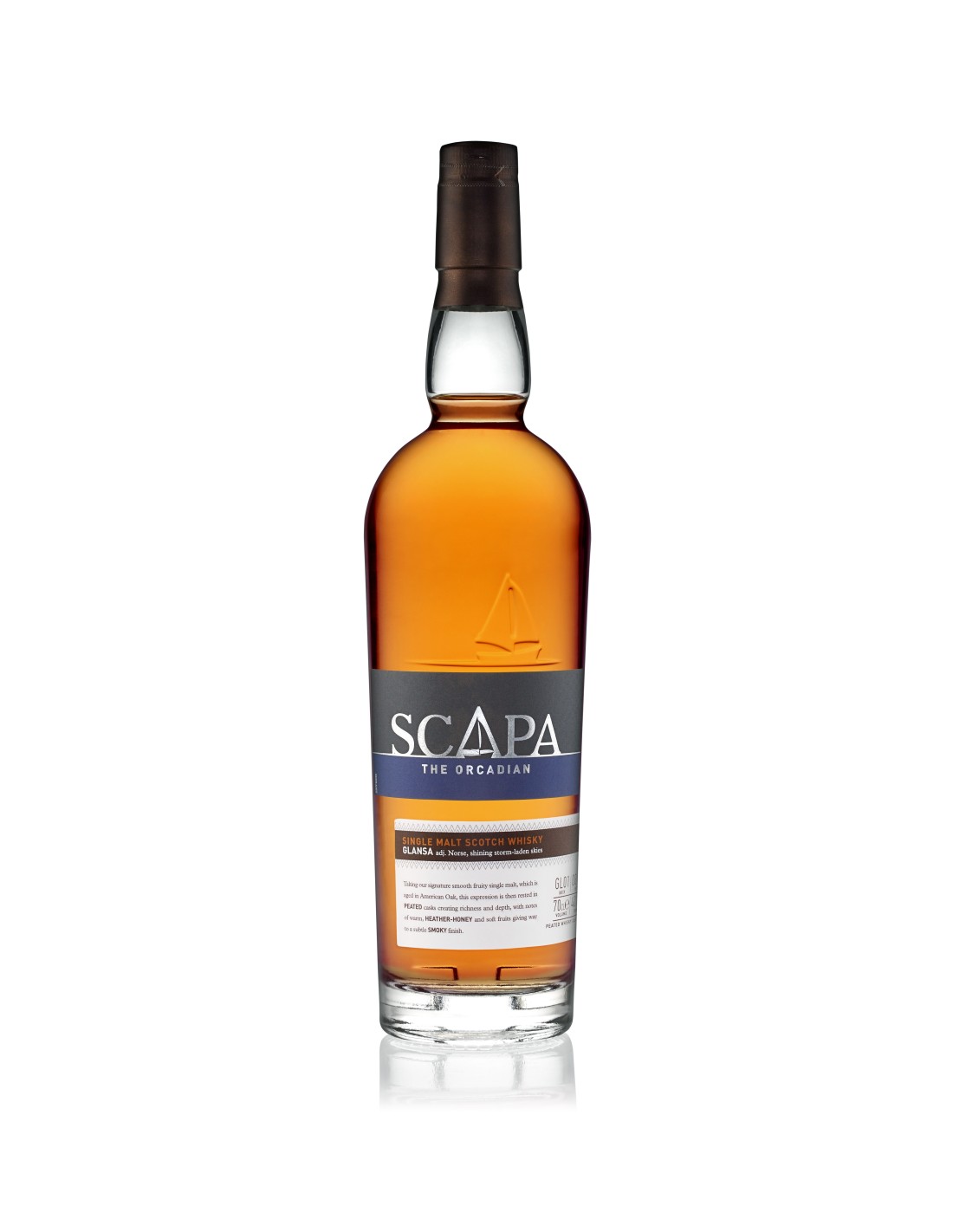 Το Scapa Glansa - Παλιό Νορβηγικό για τους φορτωμένους με ηλεκτρικές καταιγίδες ουρανούς, είναι μια γιορτή των αντιθέσεων που εμπνέονται από το ιερό του αποστακτηρίου μας στο Scapa Flow και τους θορυβώδεις ουρανούς και τις θάλασσες που συχνά το περιβάλλουν. Λαμβάνοντας την υπογραφή της μονής βύνης μελιού, η οποία παλαιώνει σε αμερικανική δρυς, αυτή στη συνέχεια ξεκουράζεται σε ζυμωμένα βαρέλια δημιουργώντας πλούτο και βάθος, δίνοντας τη θέση της σε ένα λεπτό καπνιστό φινίρισμα.