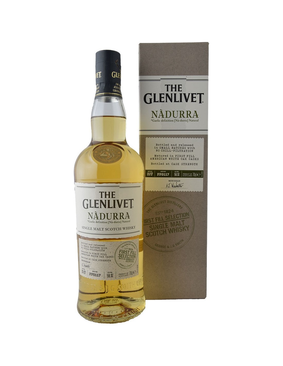Δεν υπάρχουν άλλα προϊόντα στο καλάθι σαςΤο Nàdurra, μια λέξη που στα γαελικά σημαίνει φυσικός εμφιαλώνεται και κυκλοφορεί σε μικρές παρτίδες χρησιμοποιώντας παραδοσιακές μεθόδους του 19ου αιώνα. Σε αντίθεση με τα περισσότερα σύγχρονα whiskies, δεν έχει υποστεί κανένα επιπλέον φιλτράρισμα ή αραίωση με νερό, ξεχωρίζοντας για την χαρακτηριστικά πλούσια υφή του. Το Nàdura First Fill Selection ωριμάζει σε βαρέλια από αμερικανική λευκή δρυ, που δεν είχαν φιλοξενήσει ποτέ scotch whiskies, αποκτώντας έτσι νότες κρεμώδους βανίλιας και γλυκών αχλαδιών. Αντιπροσωπεύοντας το γνήσιο πάθος του αποστακτηρίου του George Smith, ακολουθούνται ακόμα και σήμερα οι άριστες τεχνικές παραγωγής whisky που έκανε το The Glenlivet διάσημο.