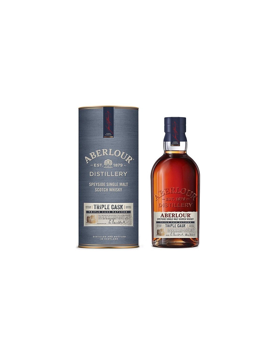 Δεν υπάρχουν άλλα προϊόντα στο καλάθι σαςΤο Aberlour Triple Cask είναι ένα μοναδικό Scotch whisky που ωριμάζει σε συνδυασμό από βαρέλια bourbon, bourbon hogsheads και βαρέλια sherry Oloroso. Στη μύτη, αναδύονται αρώματα από μπισκότα, toffee και φράουλες. Στη γεύση, ξεχωρίζουν νότες μαρμελάδας φράουλας, μαύρου πιπεριού, μέλι και μπισκότων. Ιδανικό για εκείνους που αναζητούν ένα whisky γεμάτο γεύση και βάθος.