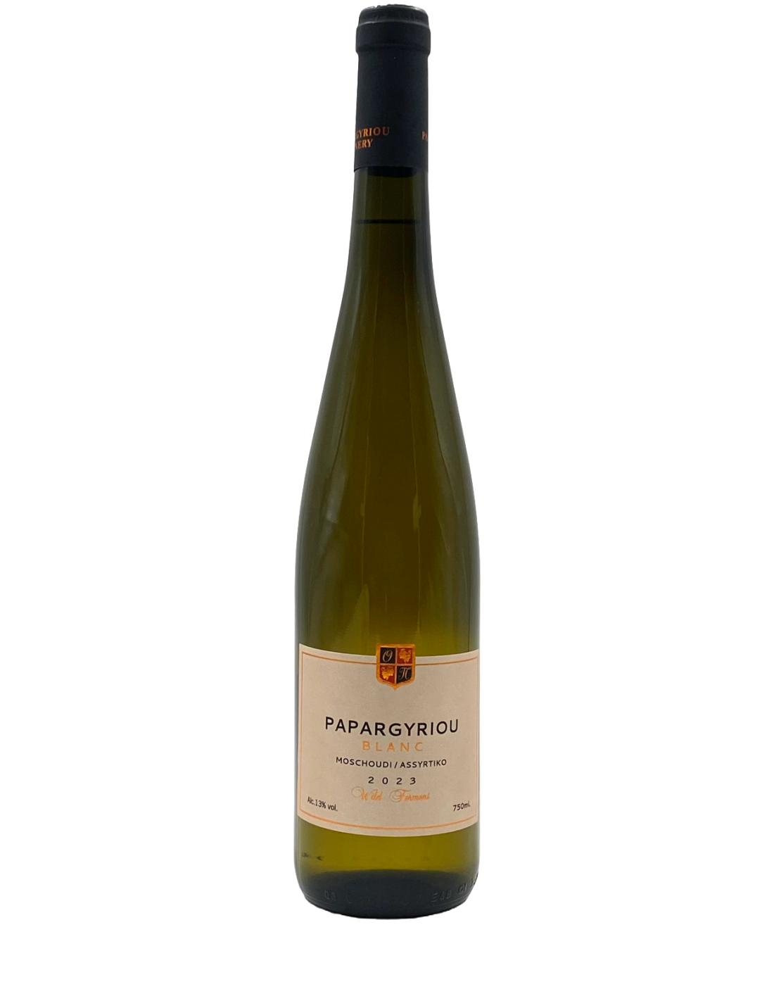 Το πλέον δημοφιλές κρασί του Κτήματος Παπαργυρίου, ένα blend από Μοσχούδι και Ασύρτικο. Το Μοσχούδι είναι το μικρόρραγο Μοσχάτο Ρίου Πατρών. Εδώ συνδυάζεται με το δυναμικό Ασύρτικο (και τα δύο καλλιεργούνται στον ορεινό μας αμπελώνα στα Σοφιανά Κορινθίας, σε υψόμετρο 850 μέτρων) και μαζί δίνουν ένα κρασί που ξεχωρίζει για το πλούσιο άρωμα του, τόσο στη μύτη όσο και στο στόμα, αλλά και την πολύ ωραία επίγευση. Συνοδεύει φρούτα, σαλάτες, λευκά κρέατα, ψάρι και όστρακα στους 9-11 0C.
